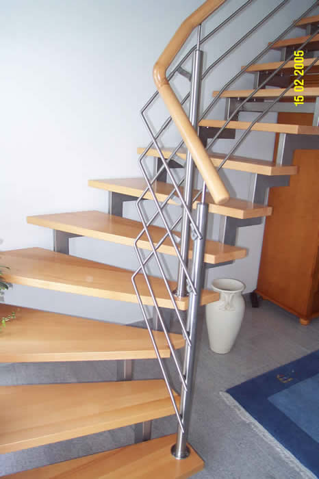 Doppelhomtreppe aus VA-Rohr 60 x40mm mit Buchestufen.